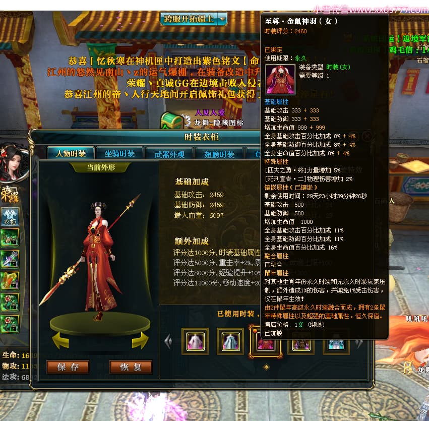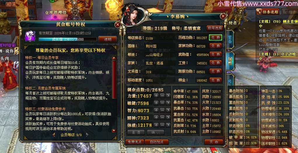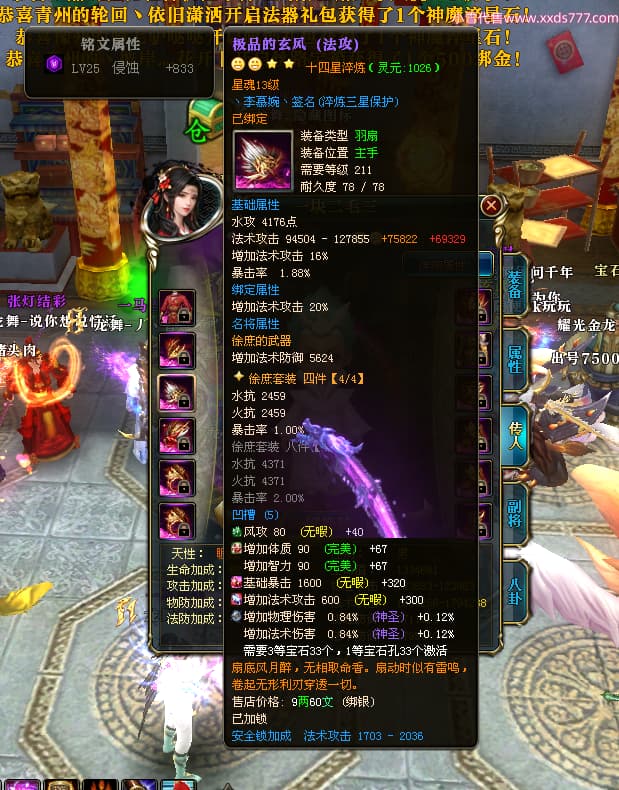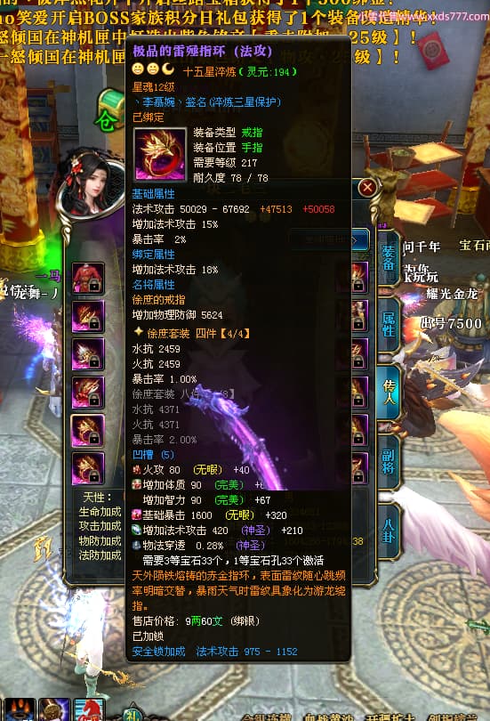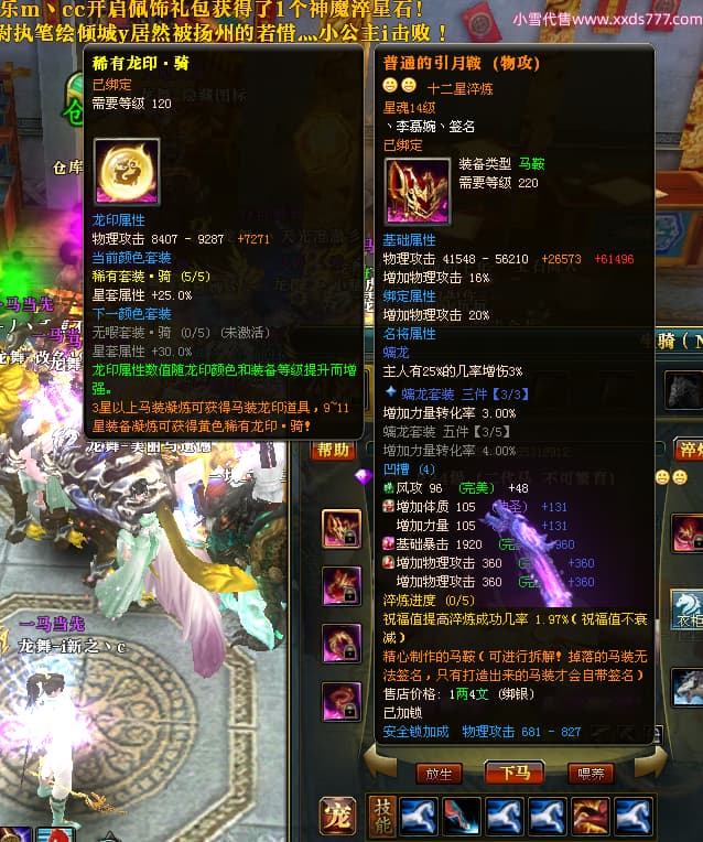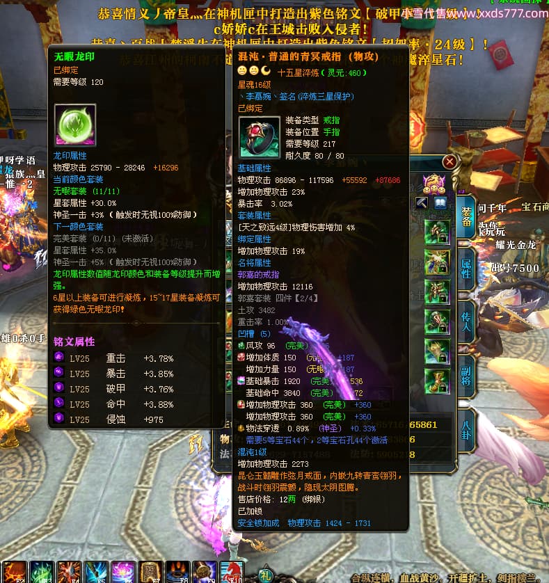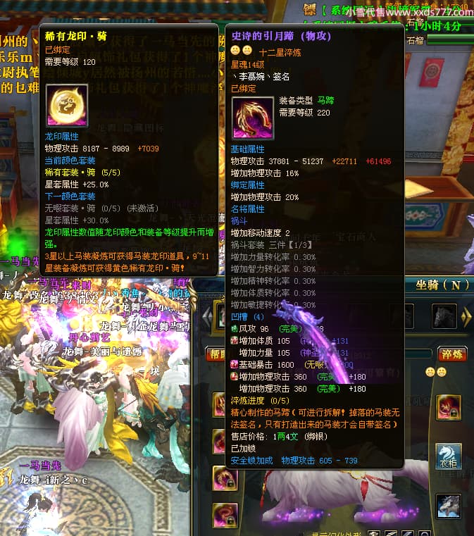 编号W25160 丶李慕婉丶 龙舞九州 荆州 本国排名55名 16738W战力 人物黄金史诗紫14X(8件15X6件混沌) 传人极品紫12X 副将精良紫12X 马史诗紫12X 精良紫15披风 人物星魂16级 传人星魂10级 副将星魂6级 马星魂14级 人物铭刻15级 点亮4件16星其余14星 马铭刻12级 点亮10星 人物绿龙印 马黄龙印 五六等单双属性神圣完美无暇石头 蓝黄孔