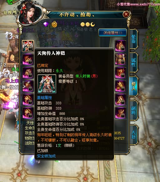 2:代挂账号截图里面的流通金,银子,道具等日常消耗会发生变化,均不作为账号详细参考,文字及截图可能会有误差,请老板以最终确认交易前为准(补充:除了游戏角色能转移的外 账號都有可能被找回风险 我们只担保交易换绑流程跟交易资金 不担保100%不会找回 我们会尽量避免找回并协助买家后期处理)支持买家购买找回包赔服务