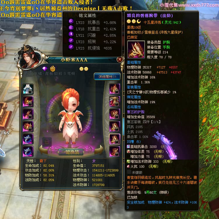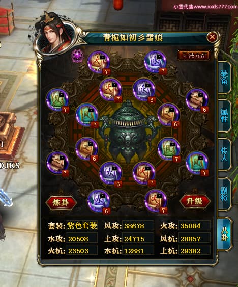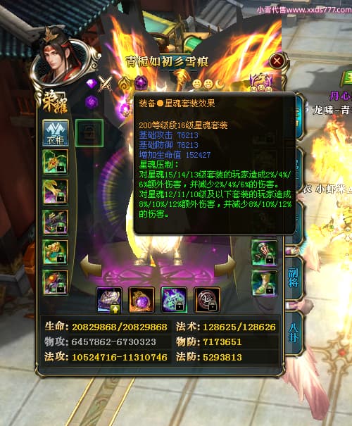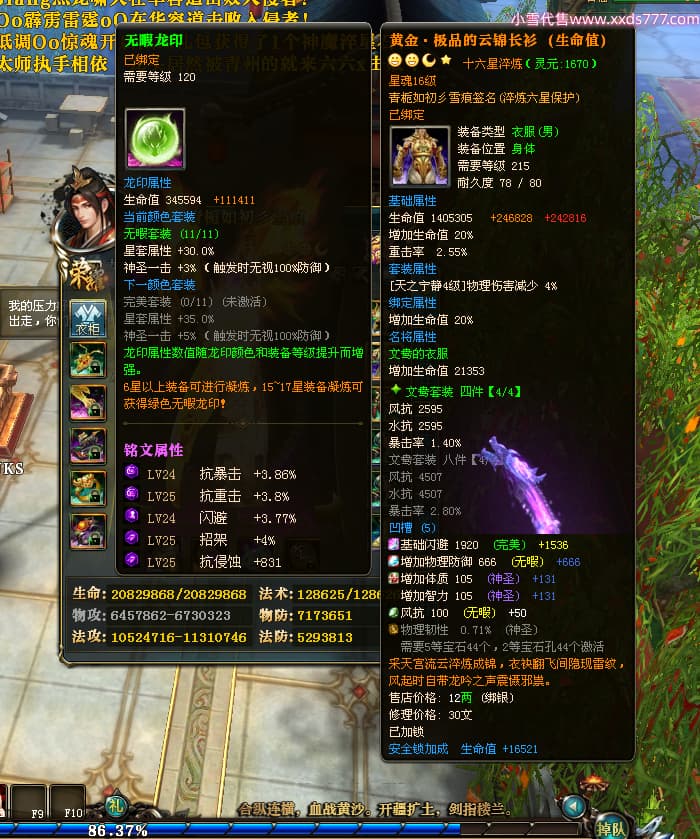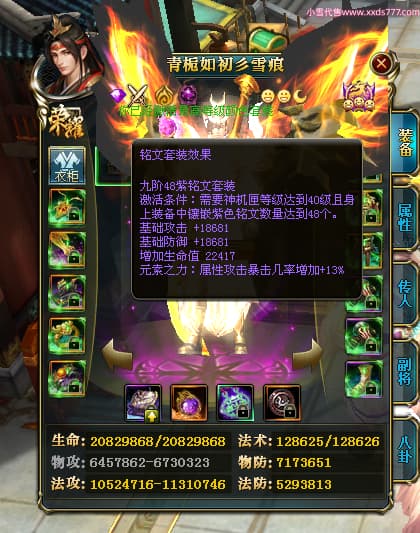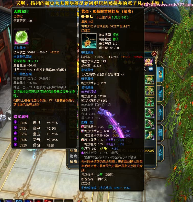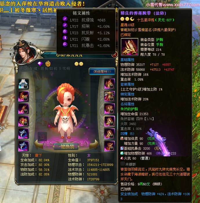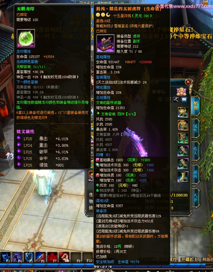 编号X25179 青栀如初彡雪痕 龙啸风云 益州 本国排名67名 16864W战力 人物黄金普通橙15X(5件混沌) 传人精良紫12X 副将精良紫12X 马史诗紫11X 极品紫15披风 人物星魂16级 传人星魂10级 副将星魂6级 马星魂14级 人物铭刻2件16级其余15级 点亮6件16星其余14星 马铭刻1件14级其余12级 点亮12星 人物绿龙印 马黄龙印 五六等单双属性神圣完美无暇石头 蓝孔 已开完永久15星套