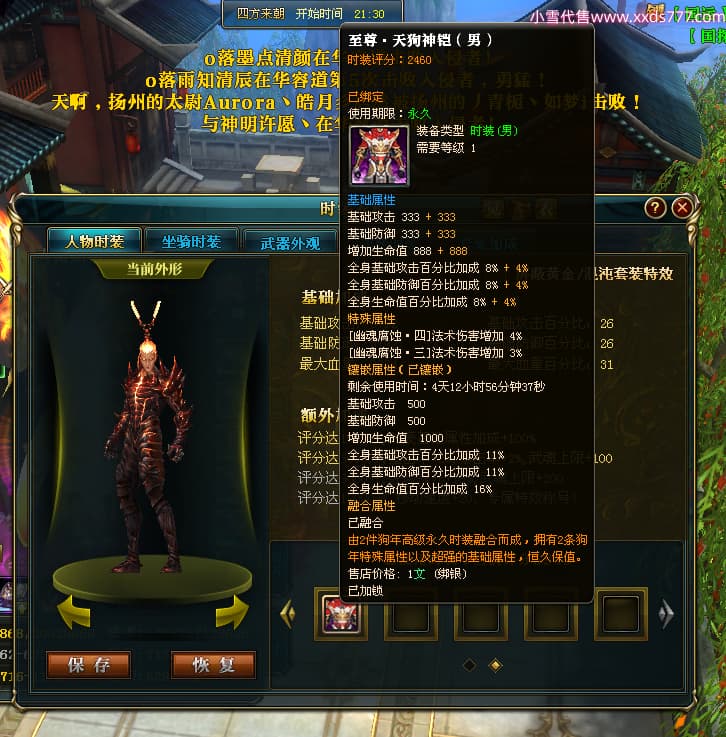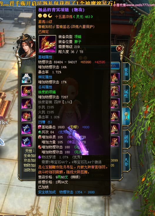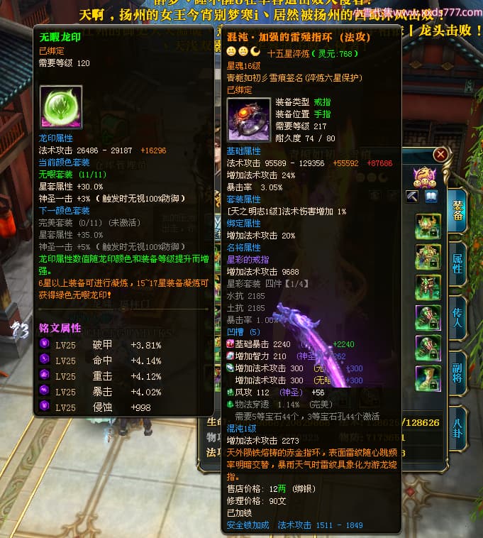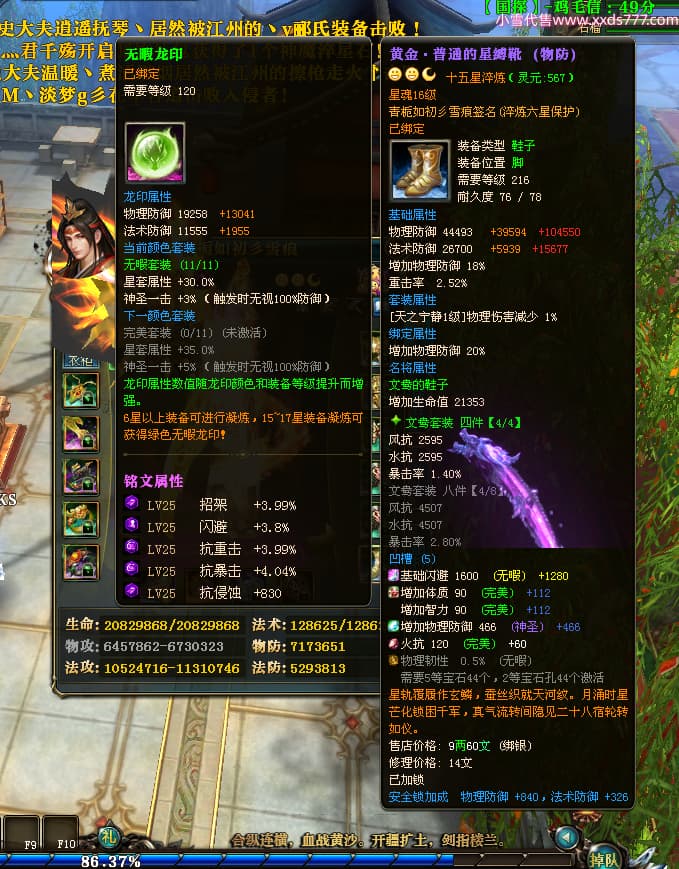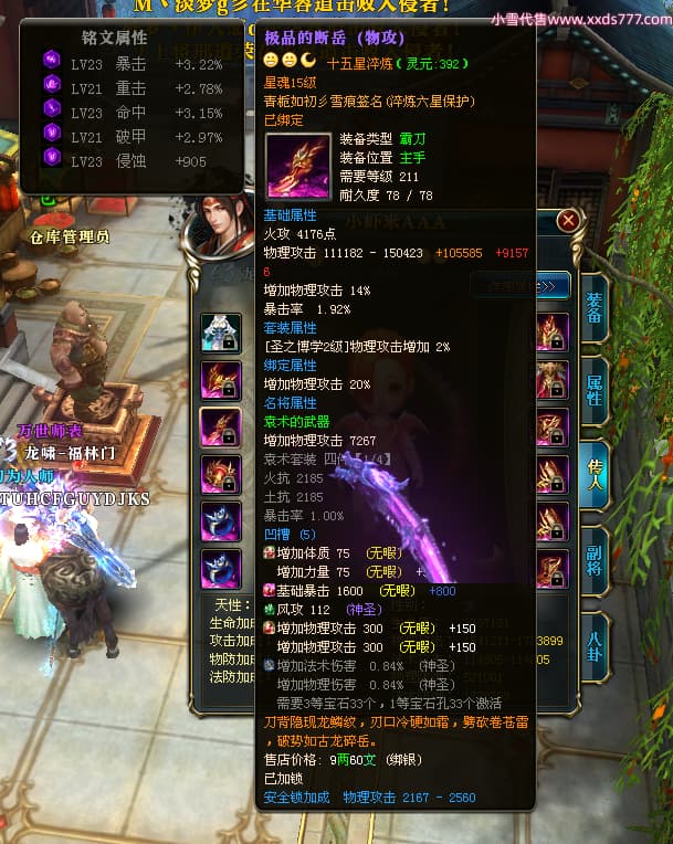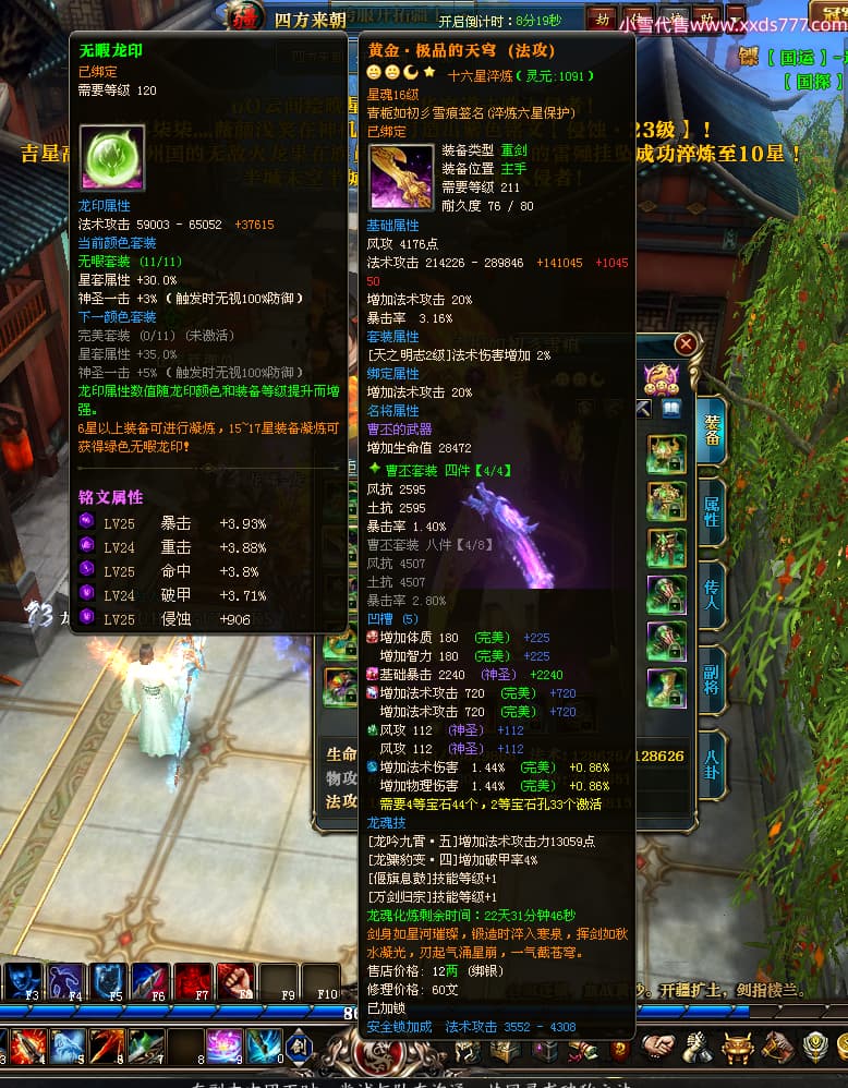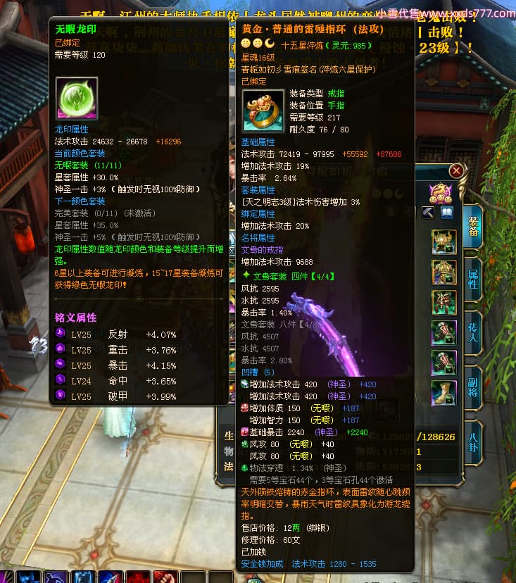 编号X25179 青栀如初彡雪痕 龙啸风云 益州 本国排名67名 16864W战力 人物黄金普通橙15X(5件混沌) 传人精良紫12X 副将精良紫12X 马史诗紫11X 极品紫15披风 人物星魂16级 传人星魂10级 副将星魂6级 马星魂14级 人物铭刻2件16级其余15级 点亮6件16星其余14星 马铭刻1件14级其余12级 点亮12星 人物绿龙印 马黄龙印 五六等单双属性神圣完美无暇石头 蓝孔 已开完永久15星套