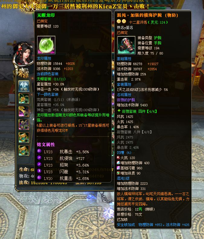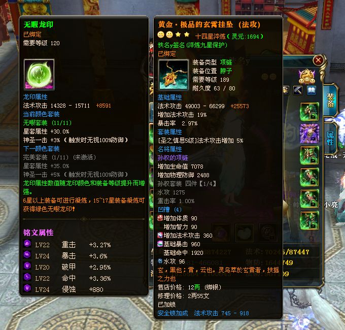 编号L17474 佚名y 龙战王者 徐州 世界排名99名 3725W战力 人物黄金加强橙12X(2件15X6件混沌) 马普通橙10X 人物绿龙印(1件紫龙印) 马黄龙印 六等单双属性石头 已开完永久15星套 可以转移百分百安全