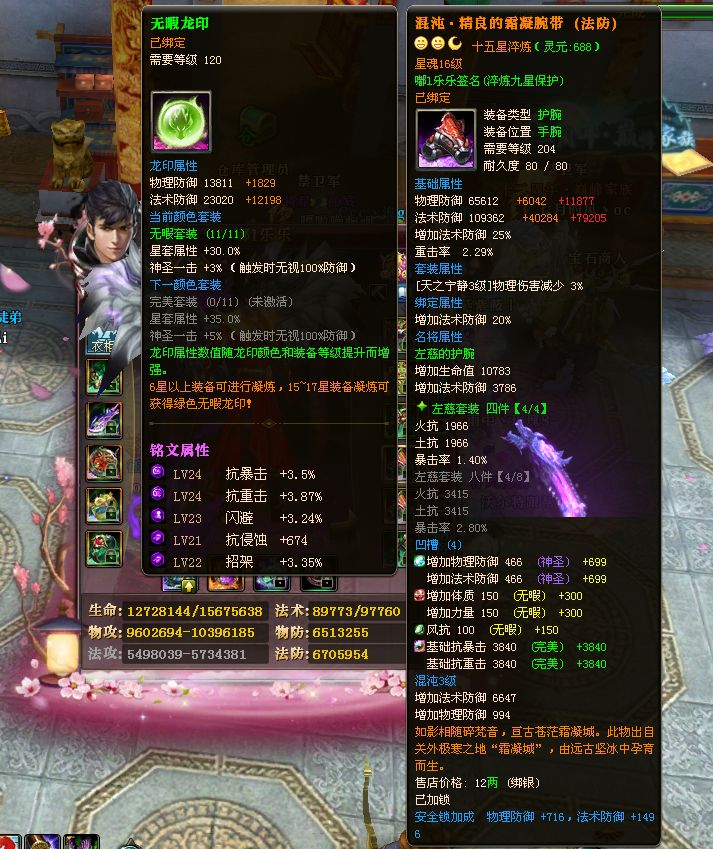 编号T20523 嘟l乐乐 龙腾问鼎 幽州 本国排名11名 15441W战力 人物黄金精良橙15X(8件混沌) 传人黄史诗紫12X 马加强橙10X 极品紫15披风 人物星魂16级 传人星魂13级 副将星魂6级 马星魂16级 人物铭刻8件16级其余15级 点亮16星 马铭刻4件15级其余14级 点亮4件12星其余10星 人物绿龙印 马黄龙印 五六等单双属性完美神圣石头 黄绿孔 可以转移百分百安全